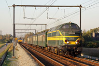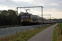 's Morgens reed de NMBS 2555 met bedevaartstrein terug naar Rotterdam-CS. Deze trein bestond uit 14 rijtuigen van zowel de NMBS als de EETC(Euro Express Train Charter).