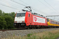 "NS Hispeed feliciteert de NMBS met 175 jaar spoorwegen in België". Deze boodschap staat sinds enkele dagen op Traxx E186 119 van NS Hispeed, die regelmatig in de beneluxdienst opgenomen werd.