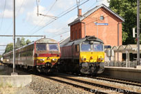 Crossrail locomotief PB 12 ,"Marleen", kwam rond 12u aan te Kalmthout om de defecte goederentrein weg te slepen.