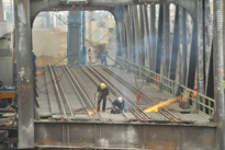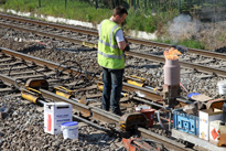 De nieuwe spoorbedding werd aangereden en genivelleerd met behulp van een kraan met een nivelleerschuif. Hierna kon men de betonnen dwarsliggers en de sporen opnieuw plaatsen. Tenslotte werden de rails terug aan elkaar gelast en werd er ballast tussen de dwarsliggers gestort.