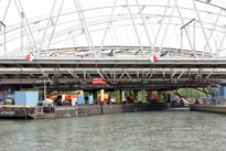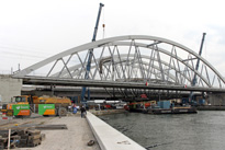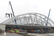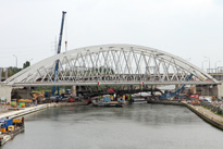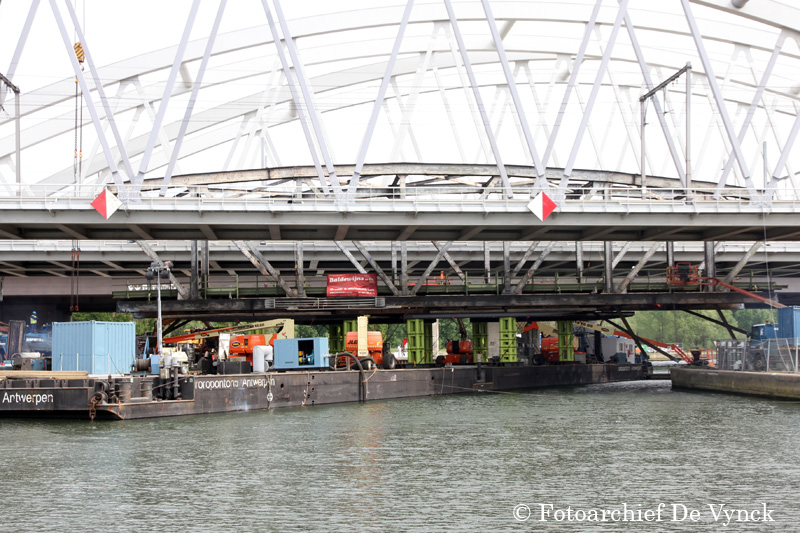 Het eerste grote deel, met een lengte van 80 meter, zou zaterdagmorgen tussen 6.00 en 10.00 geplaatst worden. Door het goede weer lag het brugdeel rond 5.00 al op zijn plaats. Vroeger dan voorzien werd het tweede brugdeel, aan de kant van het stadion, op zijn plaats gelegd. Op zaterdagmiddag rond 12.00 was ook deze klus geklaard. Op paaszondag werd het spoorverkeer stilgelegd om het laatste brugdeel te plaatsten. Omstreeks 21.00 lag het derde en laatste brugdeel op zijn plaats.