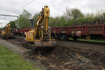 Over een afstand van 105 meter werd het oude ballastbed en een stuk van de leemlaag verwijderd. Deze leemlaag zorgde voor een onstabiele bedding. Het vrijgekomen afval werd op platte goederenwagens van het type RES geladen.